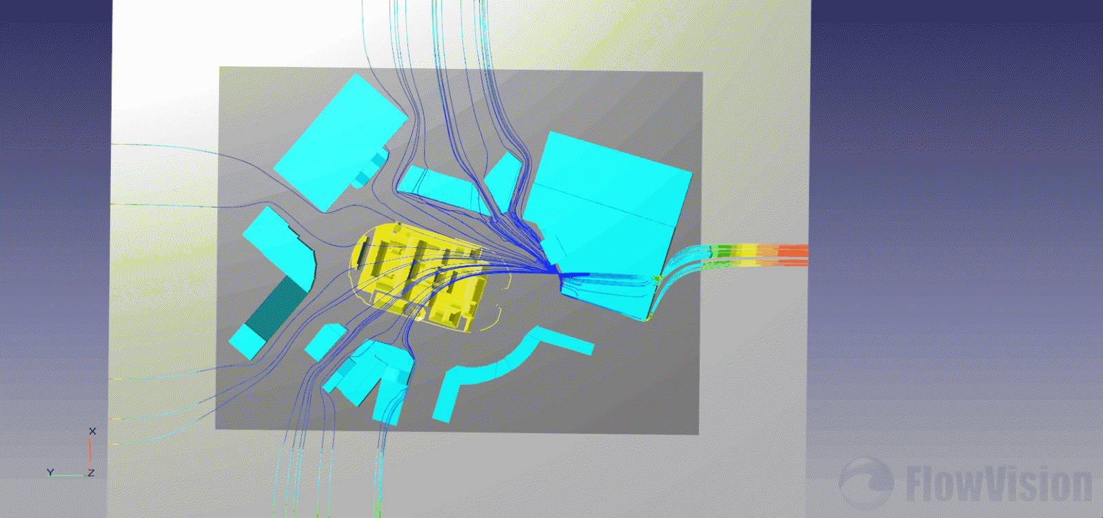 本分析以 CFD 軟體,使用其特殊的網格技術,輕易的處理外型複雜的模型(如寺廟),使 CFD 分析技術能成功的應用在寺廟的風場分析上,將寺廟受風吹拂的流場效應,在電腦中以模擬的方式重現出來