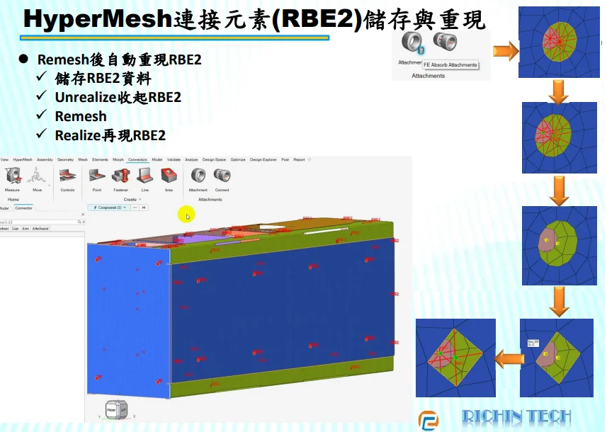 HyperMesh 亮點 - Remesh 後 RBE2 自動生成