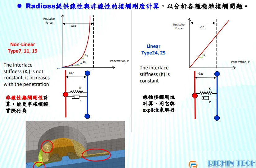 Includes both linear and nonlinear contact stiffness options to handle contact conditions of varying complexity. Users can choose as needed to achieve maximum analysis efficiency.