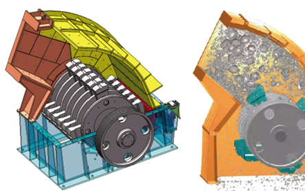 Using EDEM to simulate the crushing process, analyze breakage behavior, evaluate crushing performance, assess hammer wear, and provide guidance for early-stage crusher design.
