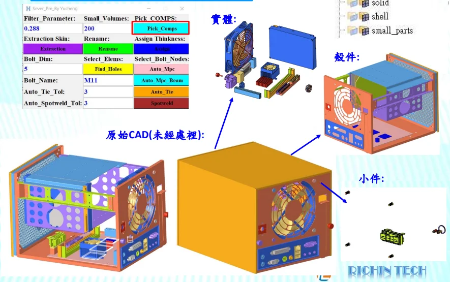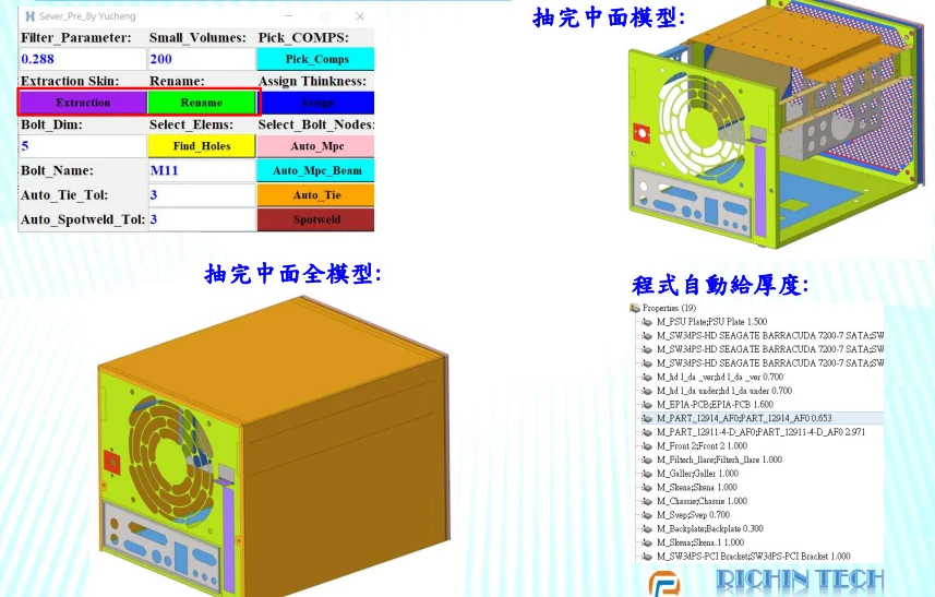 In this project, we focused on the modeling pain points of electronics customers, consolidated the powerful meshing capabilities of HyperMesh, and combined them with customized scripts developed by Richin Technology. We have successfully reduced modeling time by more than 70% for electronic products such as servers, notebooks, mice, keyboards, and more.
