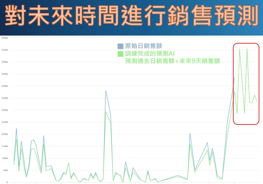 Successfully built an AI sales forecasting model trained using daily sales data from the past six months. The squared correlation coefficient of the model is 0.958, indicating very good accuracy.