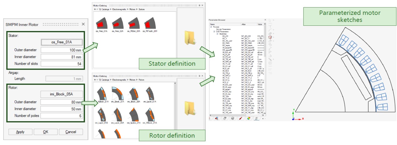 - Create SMPM: automatically generates sketches from permanent magnet synchronous motor parameters, improving modeling efficiency.