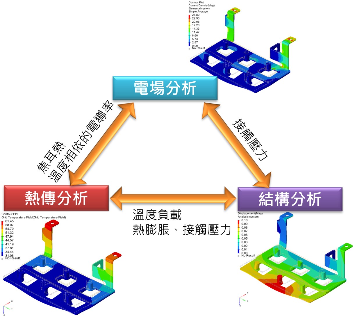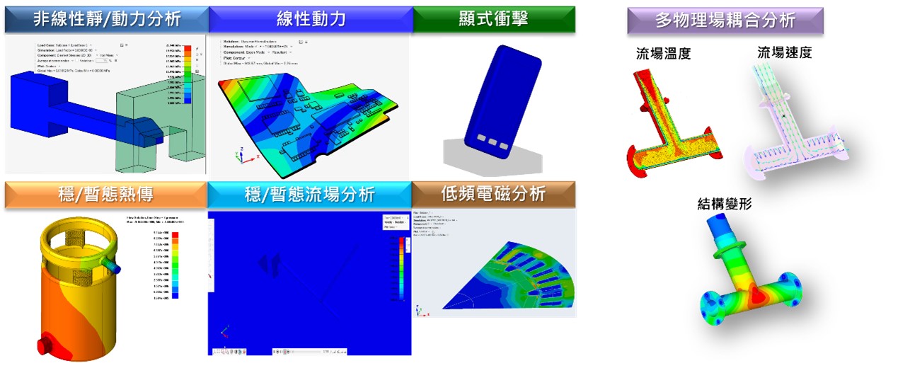 - Fully coupled electro-thermo-structural nonlinear analysis: provides a brand-new fully coupled solution mainly to support nonlinear analysis across these three physics.