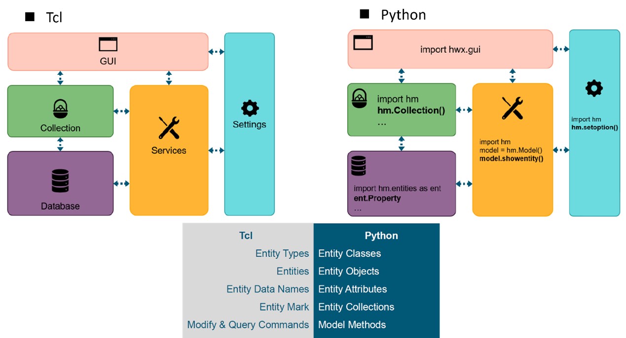 Figure 18. Architecture comparison between HyperWorks Python API and Tcl API