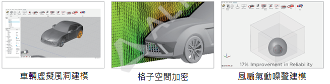 用戶可用互動式的創建監測面,檢測點,檢查與定位模型洩露位置,設定人工湍流擾動發生器,特徵識別(換熱器,風扇,車輪),設定多種格子加密方式( FarField / Box / offset / Custom )
