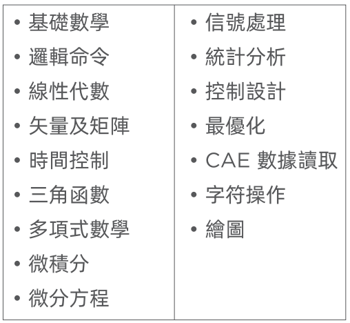 Altair Compose 能夠讓工程師、科學家和產品開發者,去有效地以腳本流程自動化的形式,對 CAE 及測試數據進行分析和圖形顯示,提供針對各類 CAE 結果文件的操作,具備統一的交互編程環境,覆蓋的數學分析類型,包括:矩陣分析、微分方程、信號處理、系統控制以及優化設計等。