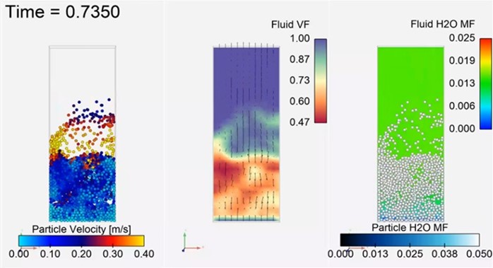 與 Fluent 耦合。用戶可以用其精確模擬各種粒子流體系統,還可通過該功能轉移化學物質資料。這樣用戶可以模擬複雜的熱反應和化學反應(例如蒸發),並且在後續更新中,還將實現燃燒模擬。這將為依賴基於此類現象建模的過程打開一系列新應用的大門。