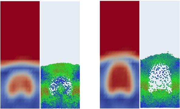 與 AcuSolve 耦合。EDEM 與 AcuSolve 可實現雙向耦合。對複雜的顆粒-流體系統進行建模,例如流體化床、氣力輸送和固液混合,其中流體會影響顆粒,顆粒也會對流體產生影響。 可考慮熱傳行為,以實現粒子-粒子,流體-粒子和固體-粒子之間的相互作用。