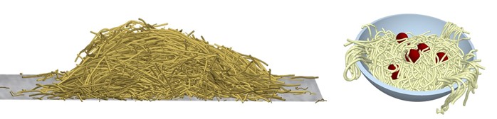 許多行業應用涉及質地柔韌或可拉伸的材料,例如纖維、農作物和草。用戶可通過 EDEM Creator 中引入的元粒子輕鬆創建粒子組,再通過升級後支持元粒子的粘接模型創建柔性纖維。元粒子與 GPU 完全相容。這樣可以大幅減少創建柔性粒子模擬所需的時間與工作量,使使用者以直接的方式創建此類材料。