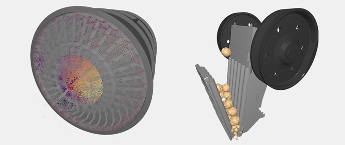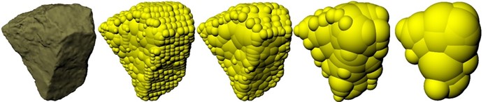 EDEM 可使用計算高效且經過充分驗證的多球體方法,模擬任何尺寸和形狀的材料。利用此方法,用戶可通過重疊多個球體來構建形狀,並且通過增加重疊球體的數量來提高形狀保真度。借助全新的球面擬合工具,使用者不再需要通過手動排列球體來創建他們想要呈現的形狀。該工具可自動構建多球體粒子,該粒子與 CAD 文件導入的粒子形狀高度匹配。用戶可以控制所使用的球體數量並限制最小球體尺寸。利用此工具,用戶無需構建粒子形狀即可從高效的多球體模擬中受益。