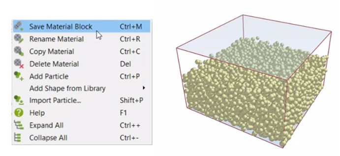 EDEM 的材料塊生成工具通過複製和排列較小的材料塊,快速輕鬆地生成大型材料塊。