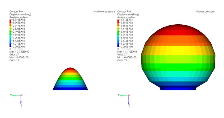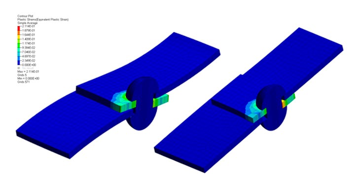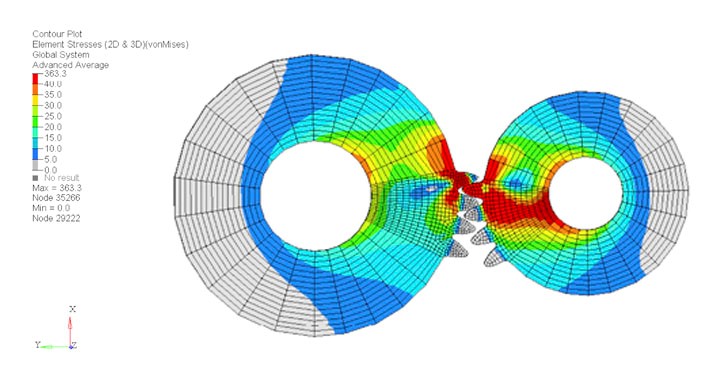 新增支援 2D 殼體和 CELAS 單元的大位移。支持有限滑動(連續滑動)。這可用於分析齒輪相互作用。