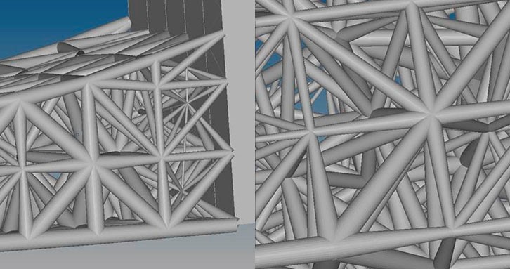 增材製造網格結構的設計和優化:網格結構具有許多良好的特性,如重量輕和熱性能佳。它們也非常適合生物醫學植入,因為它們具有多孔性特徵,並可促進器官組織與骨小梁結構的融合。 OptiStruct 有一個獨特的解決方案,能夠基於拓撲優化設計這類網格結構。因此,可以針對網格梁進行大規模尺寸優化研究,同時兼顧具體的性能目標,如應力、屈曲、位移和頻率。