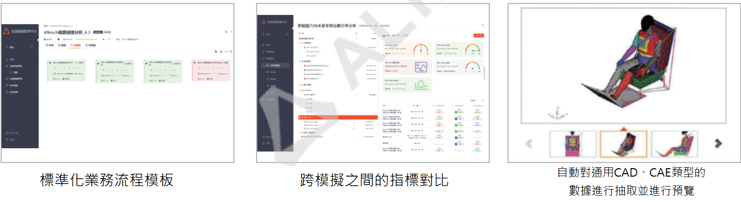 • 通過數據看板功能可以更快的獲取單一模擬,以及跨學科的協同間的定性結論