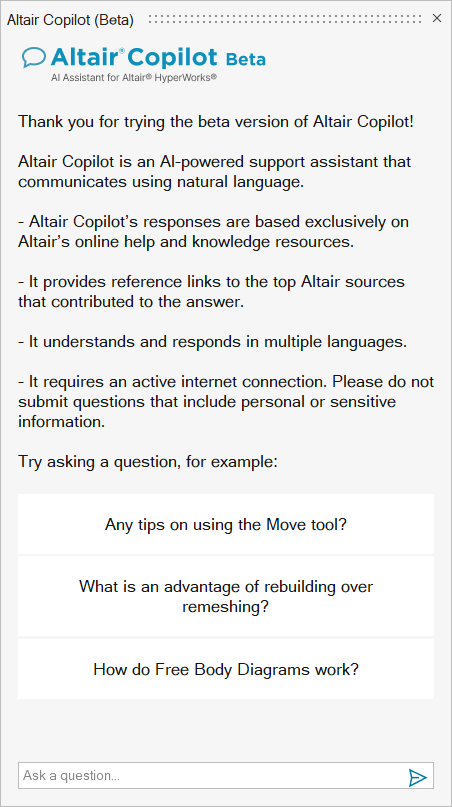在現代工程模擬與優化的過程中,快速獲取準確的技術資訊至關重要。為了提升使用者的工作效率, Altair 推出了 Altair Copilot ,這是一款內建於 Altair HyperWorks 的 AI 助手,能夠即時回答與 Altair 軟體相關的問題。
