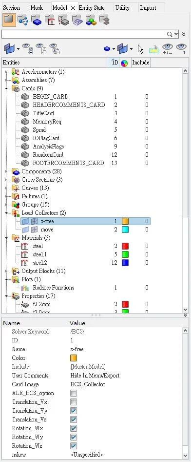 利用HyperMesh的Model Browser或Card Edit功能,進行分析步驟設定。