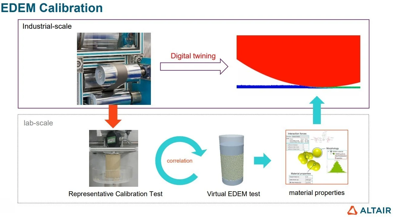 EDEM校準測試分為實驗室規模和工業規模。這些校準測試確保模擬結果與實際數據高度一致,提高模擬的準確性和可靠性。具體測試包括壓縮測試、剪力測試和顆粒堆角測試,這些測試有助於確定粒子的材料行為。