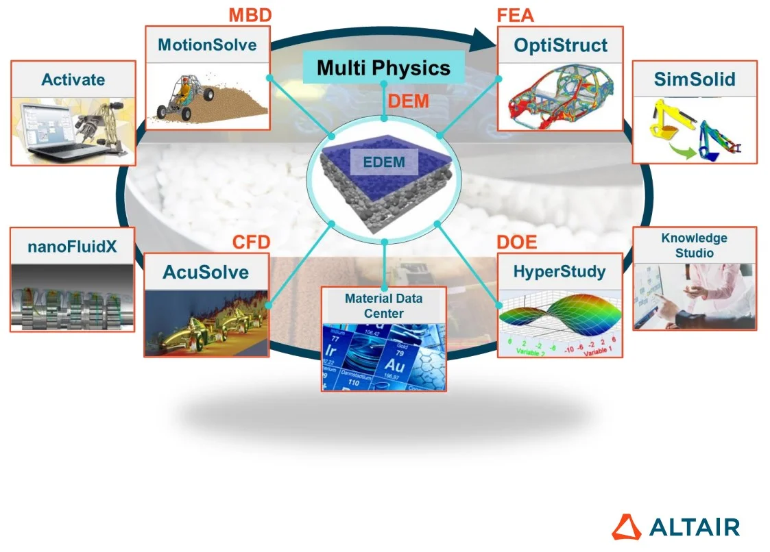 EDEM與多物理場模擬的整合,使有限元素分析(Finite Element Analysis, FEA)、計算流體動力學(Computational Fluid Dynamics, CFD)或多體動力學(Multibody Dynamics, MBD)等模擬更加真實地反映材料的變形。這不僅減少測試與實驗的需求,還提升了對設備性能的理解,有助於在複雜情境下進行模擬。