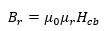 Br 剩磁(Remanence):代表一個磁鐵能夠釋放的磁場。當磁鐵受到外部磁場的影響磁化至飽和,接著移除外磁場後,磁鐵內部剩餘的磁極化大小(Magnetic polarization),因此被稱為剩磁。