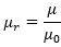 其中,m被稱作是磁導率(permeability)。在不同的介質中傳遞時,會有不同的相對磁導率mr。磁導率與相對磁導率的關係為: