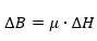 如果我們假設永久磁鐵材料的H與B是線性的關係,如同圖1中的紅色斜直線,磁場與磁通密度的變化量有以下的關係: