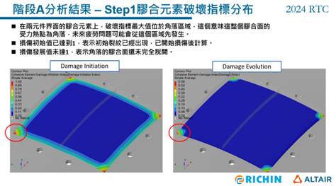 OptiStruct具有強大的非線性分析功能,能同時考慮非線性接觸、膠合強度、生死元素、熱應力分析、多步驟分析與大變形分析,透過本分析同時應用上述功能,說明軟體功能強大計算能力穩健。