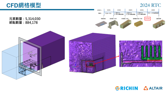 HyperWorks除了有專業的前處理器HyperMesh與SimLab,對於此題的應用,需要功能完整的結構求解器OptiStruct以及CFD求解器AcuSolve,互相搭配以完成如本主題複雜的CAE模擬工作需求。