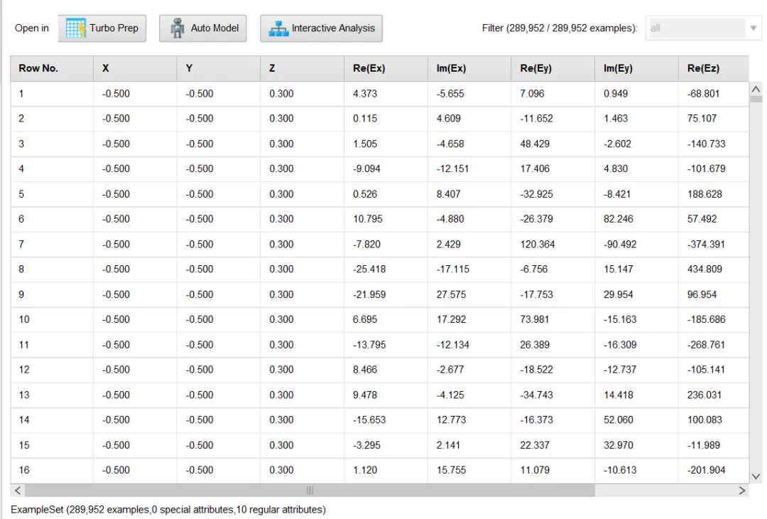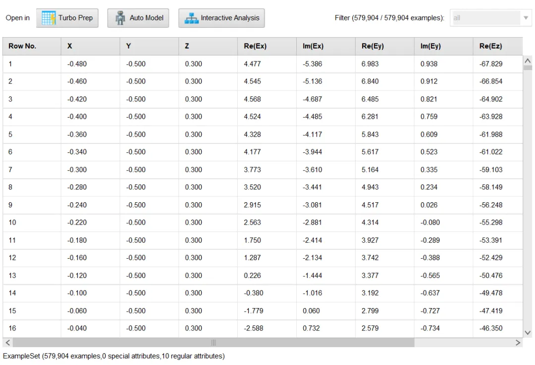 .......基於 Monarch 對於 Feko 提供的數據,提取 X、Y、Z 和 Frequency 等我們需要的數據進行數據準備。基於 RapidMiner 的數據建模