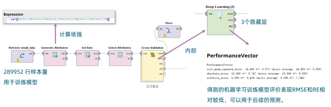 .......為解決場強幅值計算耗時問題,我們採用 Altair RapidMiner 構建預測模型。該模型基於 Feko 的空間場數據,能迅速預測不同頻率下任意坐標點的場強幅值。實現步驟包括: