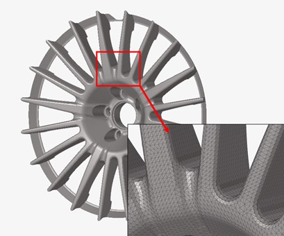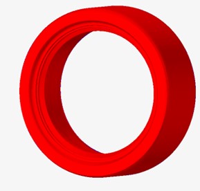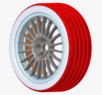 由於輪圈之徑向衝擊測試中,衝擊塊自由落體向下擊中輪圈時,充氣的輪胎會吸收不少衝擊能量,因此本文模擬中組裝好的輪圈,必須對輪圈/輪胎中的封閉體積進行充氣,方能較精準模擬徑向衝擊測試的過程。