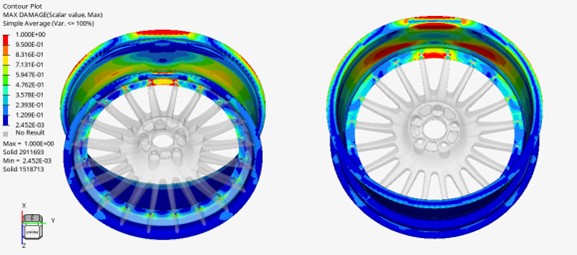 引入複材損傷理論,研究複材輪圈在受到衝擊後的損傷。