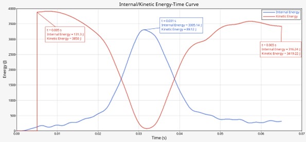 圖12 輪圈徑向衝擊分析的內/動能時間歷程曲線圖