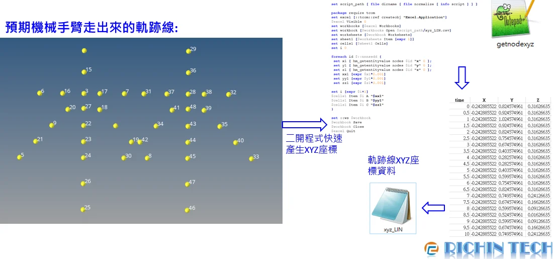 將我們想讓機器手臂走的路徑資料,彙整成XYZ座標的形式。