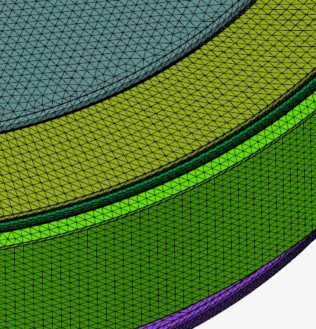 做了基本的幾何清理後,SimLab 基本可以一鍵劃分四面體網格,網格品質也很不錯。下圖是網格的局部特寫。