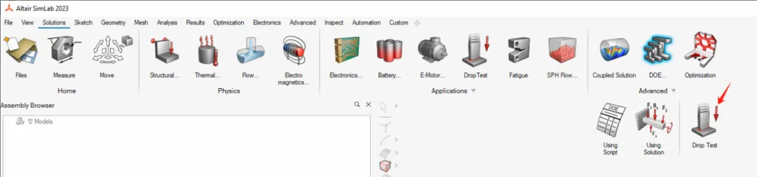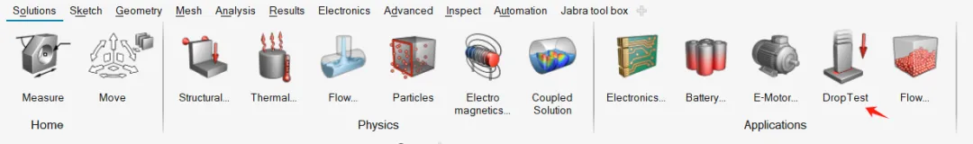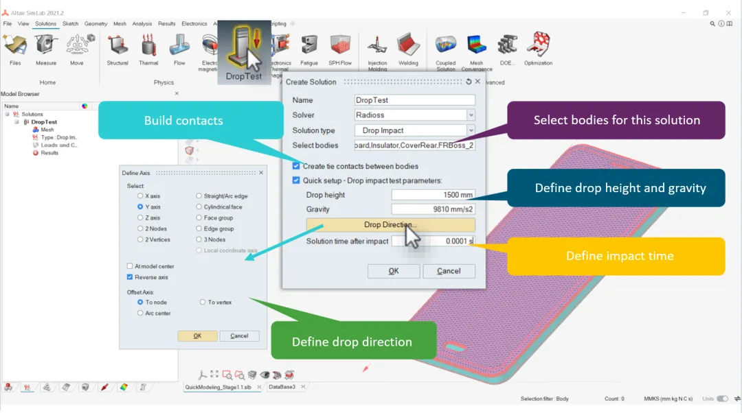 隨後點擊 DropTest 圖示,進行落摔的相關設置,如果前面還沒有進行網格劃分,也可以在這裡直接調用落摔網格劃分工具進行快速網格劃分。