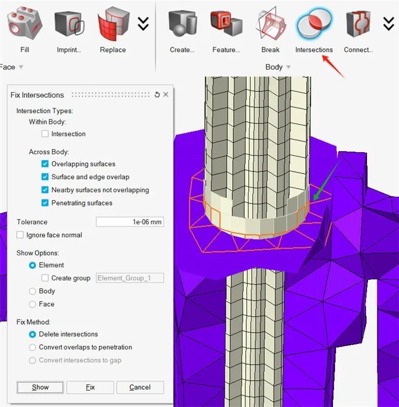 也可以用 Intersections 檢查干涉,可以更精細檢查干涉同時修復