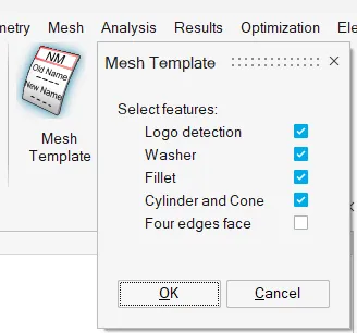 儘管在 SimLab 中,我們可以快速自動完成網格劃分,但還是建議做一些幾何清理,減少不必要的網格數量,SimLab 中提供了一些快速幾何清理的工具,例如,我們可以通過 Geometry → Feature-Detail 等功能進行去圓角,去 logo,去除一些小凸點等操作,下圖即以一個螺釘為例,對其進行了簡化後,劃分了高品質的網格。
