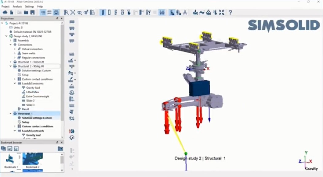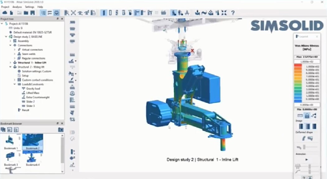 我們這次分析的對象是一台含 1600 個零部件的大型起重機整機模型。傳統方法可能需要數天甚至數週的建模與解算時間。但透過 SimSolid,我們取得了以下結果: