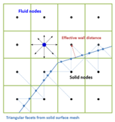 在壁面處理方面,與貼體網格位於網格表面不同,ultraFluidX的固體壁面位於網格內部,程式會自動識別壁面,並由Effective wall distance精確捕捉曲面形狀,正是此特點可以讓使用者不必費心處理簡化幾何,大幅降低手動時間(圖四)。